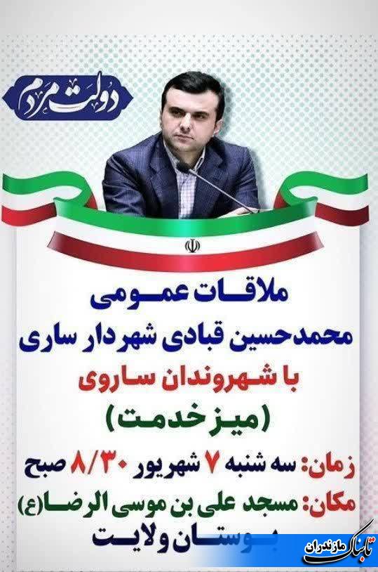 محمد حسین قبادی شهردار مردمی ساری صبح امروز در میز خدمت بمناسبت هفته دولت در مسجد علی ابن موسی الرضا ع در بوستان ولایت حضور یافت و حضوری به پرسشهای شهروندان ساری پاسخ داد که این حرکت رضایت مردم شریف شهرستان ساری را در پی داشت.